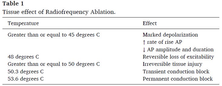 Table 1 — Thermal effects of radiofrequency on tissue.