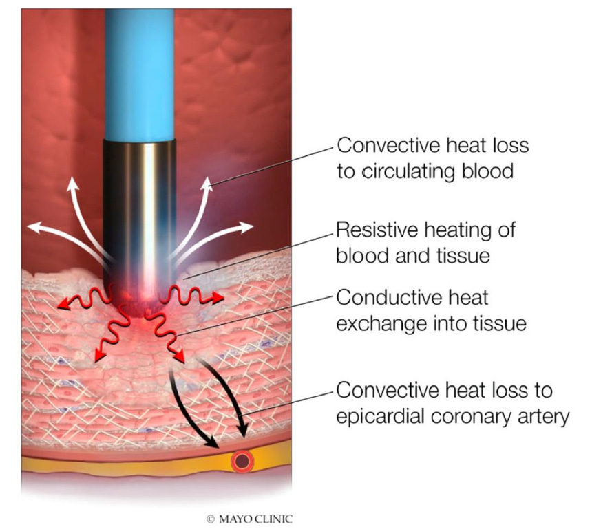 The article highlights two extremely relevant mechanisms of heat loss: convective cooling by circulating blood and the heat sink effect of epicardial vessels. Both reduce effective tissue heating and may limit final lesion size.